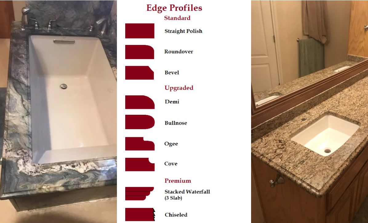 When you work with our expert team, you have the freedom of choice on your side. You can choose from marble, quartz, or granite countertops in a variety of patterns and colors. We even offer different countertop edge profiles for the perfect finishing touch!